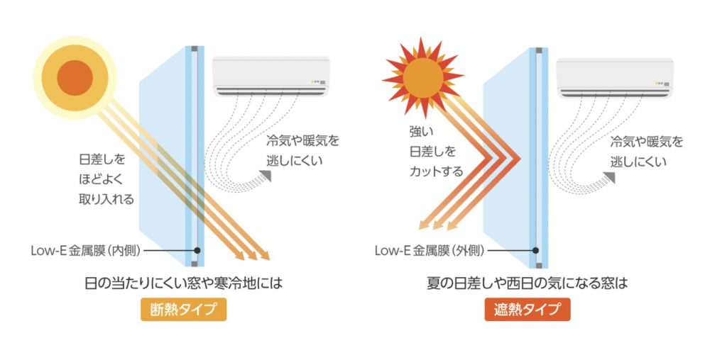 そのため、遮熱よりも断熱性に特化したガラスがおすすめです。