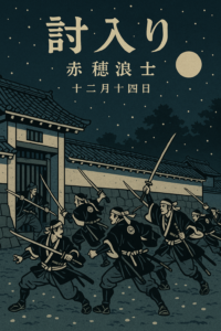 忠臣蔵として語り継がれ、日本人の精神文化を象徴する物語として、今も多くの人に親しまれています。赤穂浪士の討ち入りがあったのは、元禄15年12月14日(旧暦)。現在の暦(新暦)に換算すると、1703年1月30日ごろ にあたります。現代の感覚では1月下旬、まさに一年で最も寒さが厳しい頃でした。