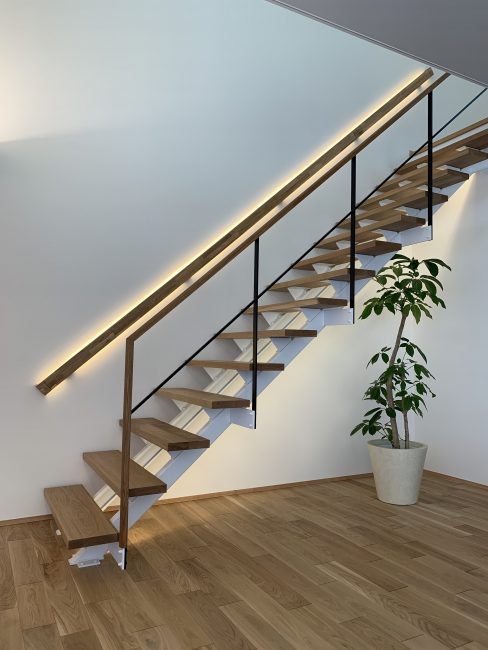 2020.3.12 / 最終更新日時 : 2020.8.1 nhome-wpadmin 家づくりエッセンススケルトン階段と照明日建ホームの新モデルハウス、超高性能ハイブリッド住宅「nex」。設計・素材・構法など最高の品質を実現しています。照明にも随所に工夫が凝らしてあり例えば階段。 アイアンのスケルトン階段(オープン階段)開放感を利用した照明計画です。階段下や手摺の陰影と白い漆喰の壁がとても美しく、足元・手元が明るいので例えば夜の上り下りもまぶしくなく安全です。by.nao
