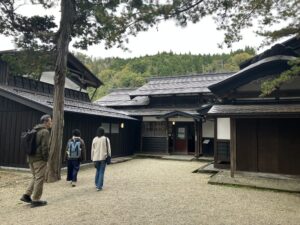 『岩橋家』 切妻造り、木羽葺き屋根の岩橋家は、もとは萱葺き屋根で享保年間から現在地にあります。