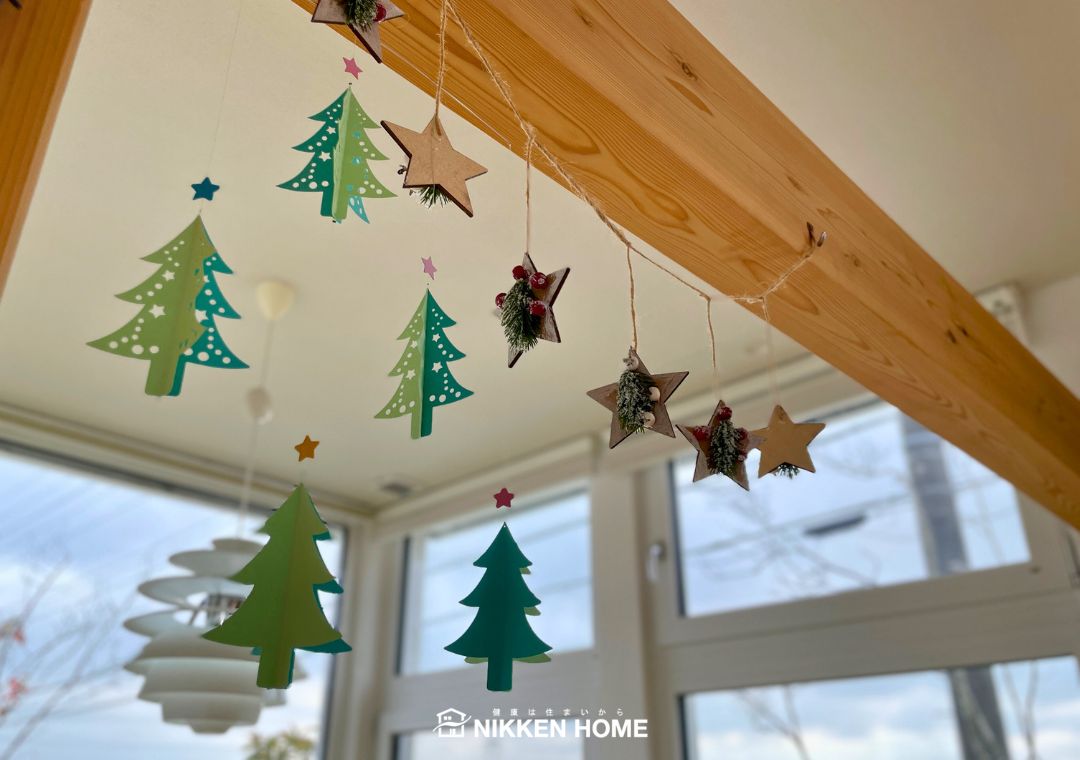 本日、モデルハウスにてクリスマスの飾りつけをしました!
