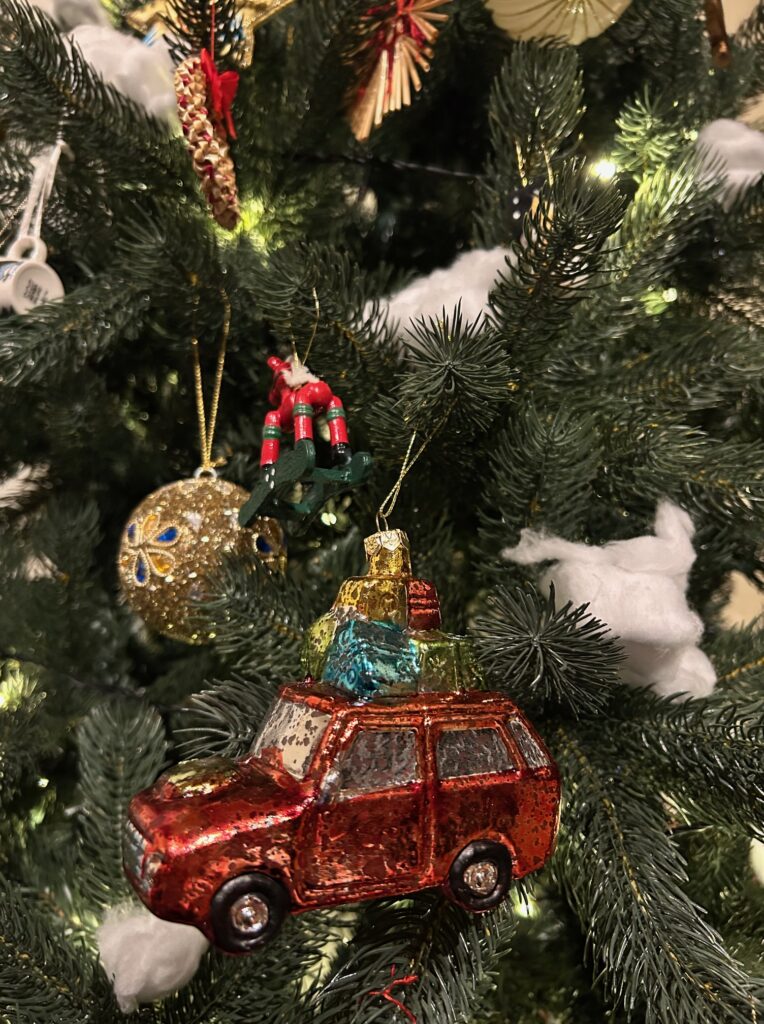 車のブリキのオーナメントは旅先で以前ゲットしたものです。