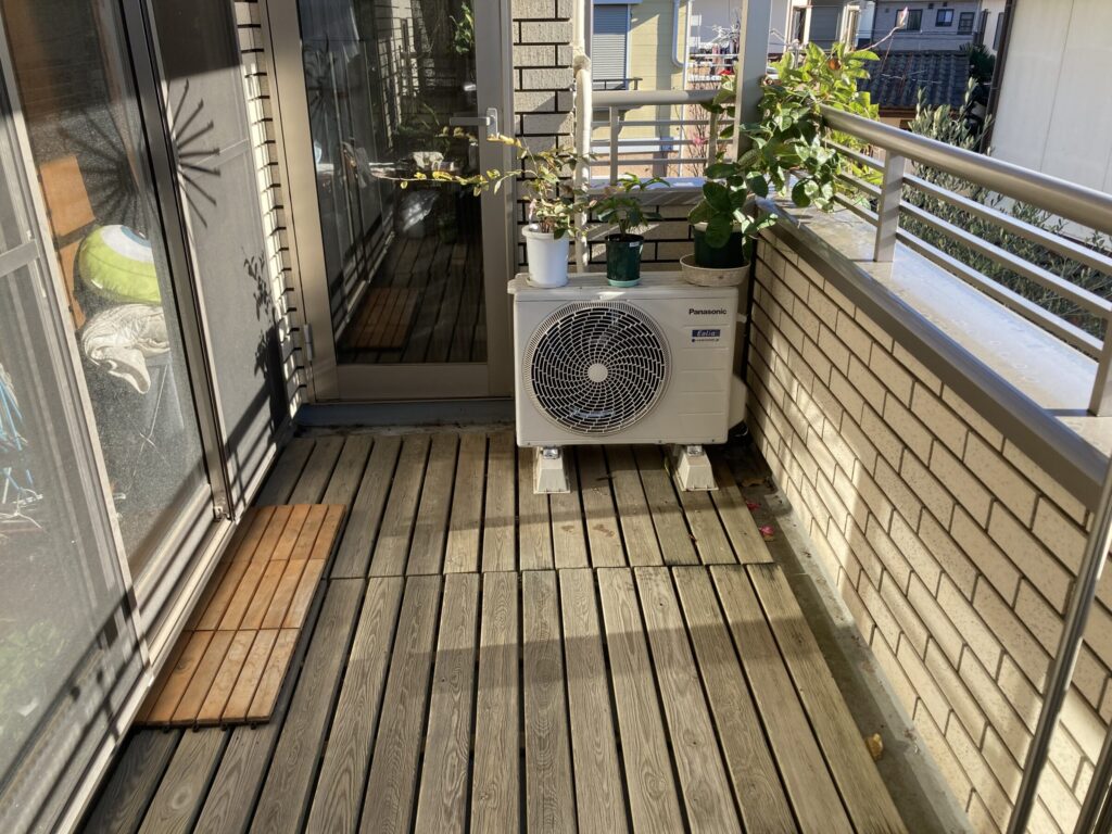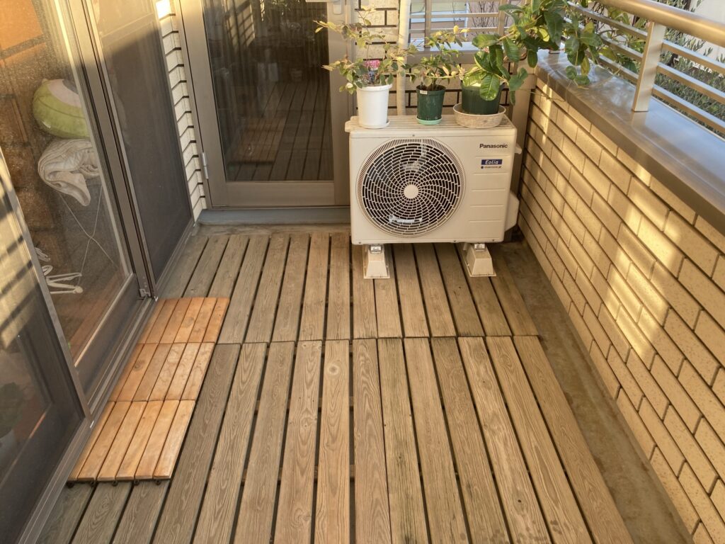 敷いてあるスノコですが、以前に住んでいたマンションのコンクリートのベランダの上に使っていたもので、かれこれ20年近くが経っていると思います。