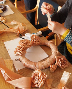 このバラを土台に巻き付けて、木の香り漂うリースの完成!!