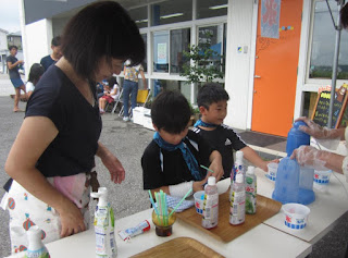 お子様たちは終わりの頃には金づちで上手に釘が打てるように。