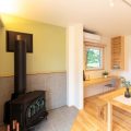 薪ストーブを備える趣深く暖かな空間